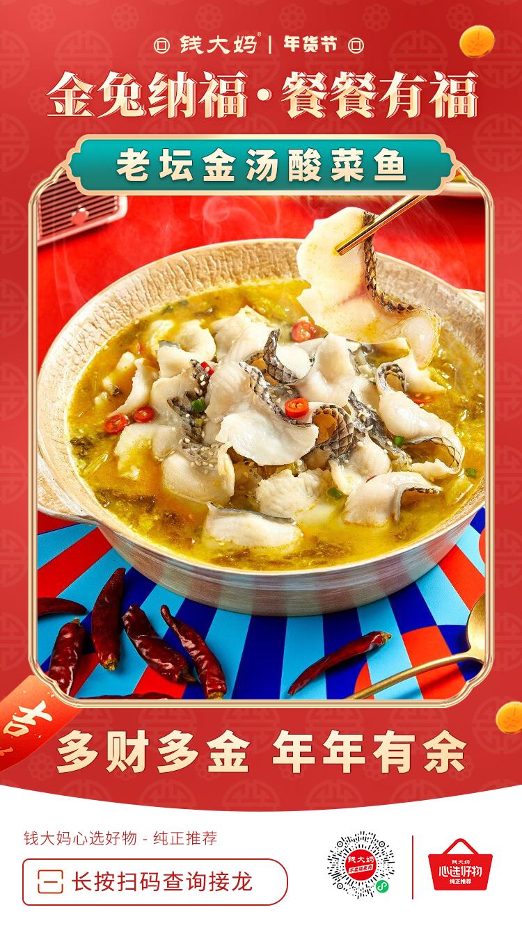 老坛金汤酸菜鱼、剁椒鱼头、黄金蛋饺、金牌梅菜扣肉、经典佛跳墙……货架上陈列的一道道简单易上手的预制菜凝聚了锅气的滋味,让“小白”也能轻松当上大厨。据了解,这些美味菜肴是钱大妈年货节“餐餐有福”特别推出的“好意头菜”,专为兔年春节打造,希望用美好的寓意为广大消费者带来新春佳节的好意头、好兆头、好彩头。