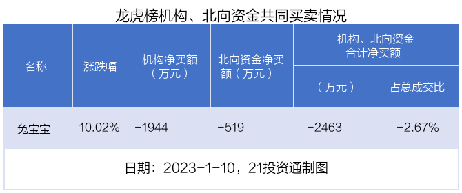 值得注意的是,机构和北向资金共同净卖出了兔宝宝。