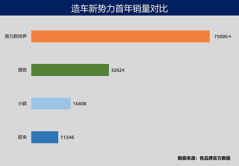 2022年,赛力斯接连发布问界M5、问界M7以及问界M5 纯电版三款车型,总交付量突破7.5万辆,刷新行业记录,成为至今“成长速度最快的新能源汽车品牌”,对比“蔚小理”的首年交付成绩,赛力斯的首年销量已实现了超越三家的总和,“赛力斯速度”可谓实至名归。