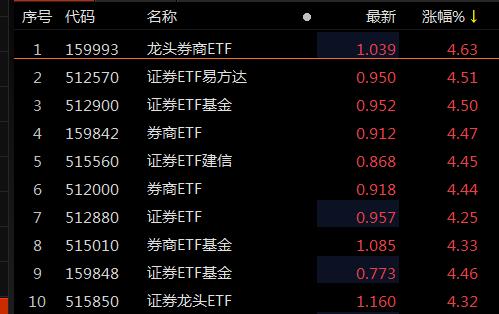 ETF观察丨“牛市旗手”券商股躁动,龙头券商ETF(159993)、证券ETF易方达(512570)均涨超4%