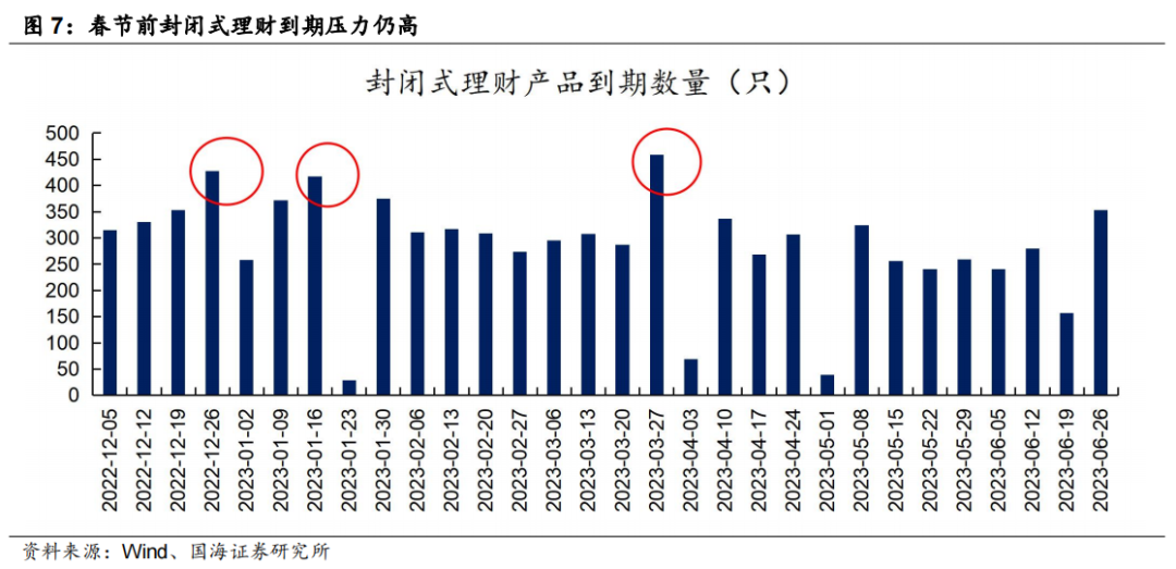 根据我们梳理的银行理财到期情况,春节前封闭式理财再度出现到期“小高峰”。部分散户投资者赎回理财,并将表外资金转移至表内银行存款,同样会给流动性带来补充。