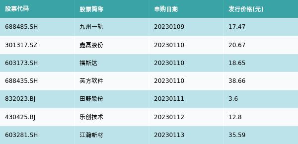 上周有7只新股发行,详情见下表: