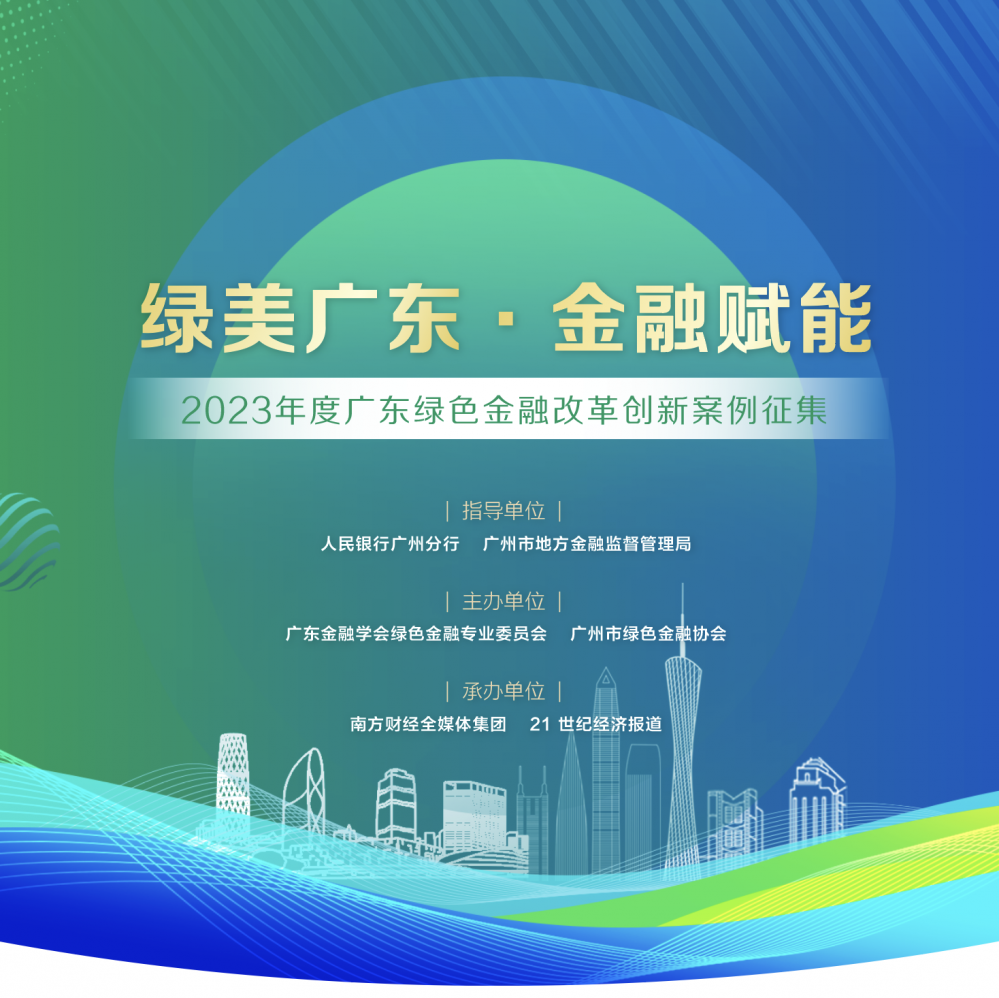 为发挥金融赋能“绿美广东”建设的积极作用,进一步总结和推广广东绿色金融改革创新优秀经验和成功案例,广泛宣传绿色金融和绿色发展理念,在人民银行广州分行和广州市地方金融监督管理局指导下,由广东金融学会绿色金融专业委员会、广州市绿色金融协会主办,南方财经全媒体集团、21 世纪经济报道承办的“绿美广东,金融赋能——2023年度广东绿色金融改革创新案例征集活动”拟于2023年1月17日正式启动。