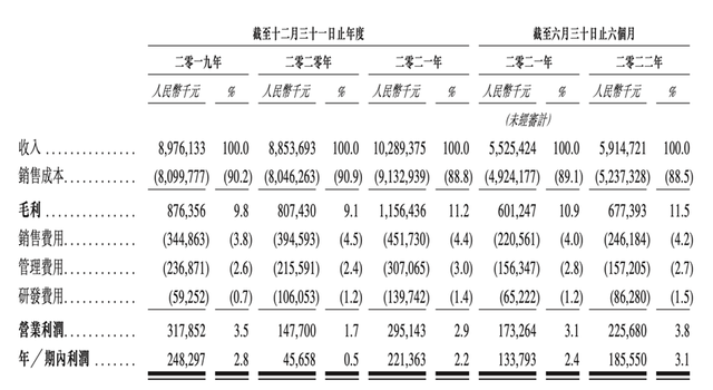 据招股书显示,2019年-2021年百果园营收有所增长,分别为89.8亿元、88.5亿元和102.9亿元;毛利分别为8.76元亿元、8.07亿元、11.56亿元,净利润分别是2.48亿元、0.46亿元和2.21亿元。