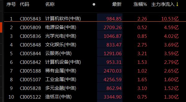 资金方面,计算机软件板块获主力资金净流入超10亿元,金额居前。