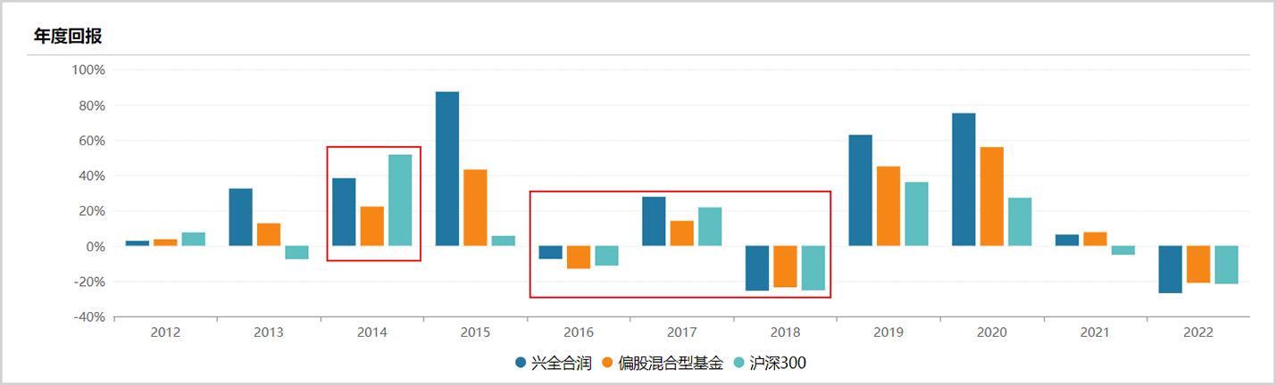 如在2014年、2016-2018年的大盘权重行情中,谢治宇业绩毫无亮点;而在2015年、2019-2020年的成长股行情中却表现异常抢眼。