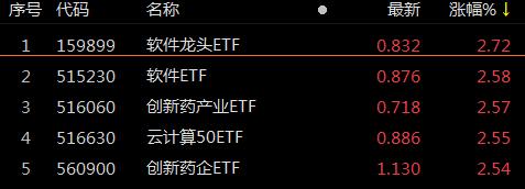 ETF方面,截至发稿,软件龙头ETF(159899)领涨,涨超2.7%。软件ETF(515230)、云计算(516630)跟涨,均涨超2.5%。