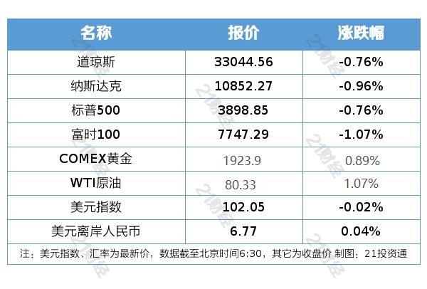 纽约股市三大股指19日下跌。截至当天收盘,道琼斯工业平均指数比前一交易日下跌252.40点,收于33044.56点,跌幅为0.76%;标准普尔500种股票指数下跌30.01点,收于3898.85点,跌幅为0.76%;纳斯达克综合指数下跌104.74点,收于10852.27点,跌幅为0.96%。