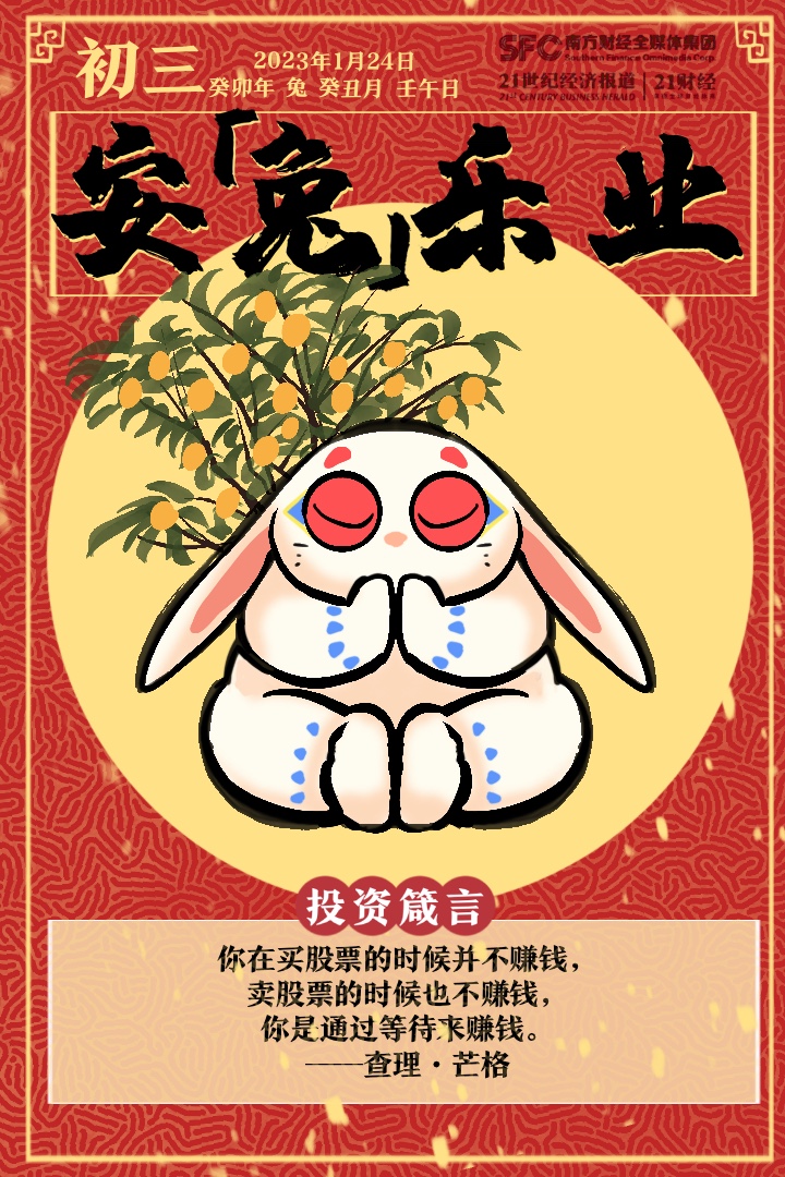 兔年纳福,喜迎新年!春节放假,财富、知识不休假!21财经客户端推出一组“兔年投资箴言”海报,与你重温经典投资语录,助你投资收益“兔”飞猛进。从除夕到初七,每日一学,敬请期待。