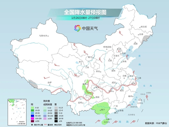 今起三天(1月26日至28日),我国大部地区雨雪稀少,总体天气利于春运返程。一股新冷空气今天登场,中东部部分地区将有4~6℃降温,局地降温超过8℃,今明天北方气温将处于较常年偏低状态。整体来看,冷空气影响短暂,降温实力较弱,我国大部地区升温是主旋律。