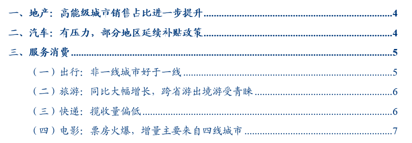 本周周报关注春节消费恢复情况。主要关注地产销售、耐用品(汽车)、服务消费(出行、旅游、电影等)。