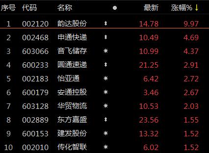 今日早盘,物流股震荡拉升,韵达股份涨停,申通快递、音飞储存、圆通速递、怡亚通等跟涨。