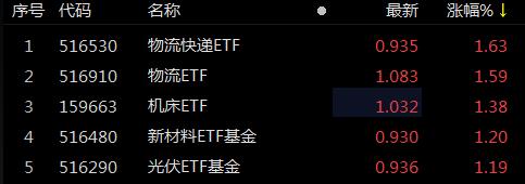 截至发稿,物流快递ETF(516530)、物流ETF(516910)盘中走强,分别涨超1.63%和1.59%。