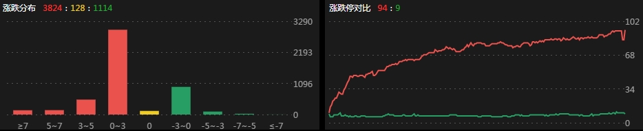 涨跌数对比:3824:128:1114