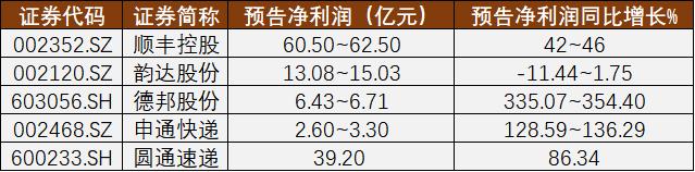 1月31日,披露全年业绩预告后的交易日,韵达股份喜提涨停,圆通速递、申通股份、德邦股份跟涨。