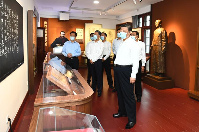 2021年6月25日,中共中央政治局就用好红色资源、赓续红色血脉举行第三十一次集体学习。这次集体学习采取参观和讨论相结合的形式,这是习近平等在北大红楼参观“光辉伟业红色序章——北大红楼与中国共产党早期北京革命活动主题展”。新华社记者谢环驰摄