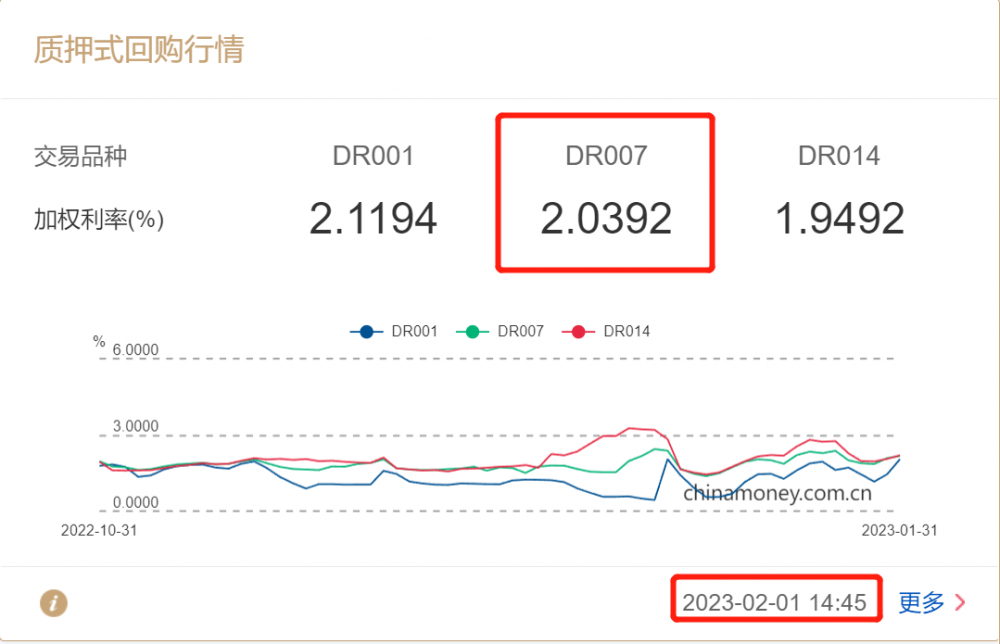 全国银行间同业拆借中心数据显示,截至2月1日14时45分,判断流动性松紧的重要指标——DR007(银行间存款类机构7天质押式回购加权平均利率)报2.0392%,较春节前出现明显回落,目前仅略高于7天期逆回购利率。