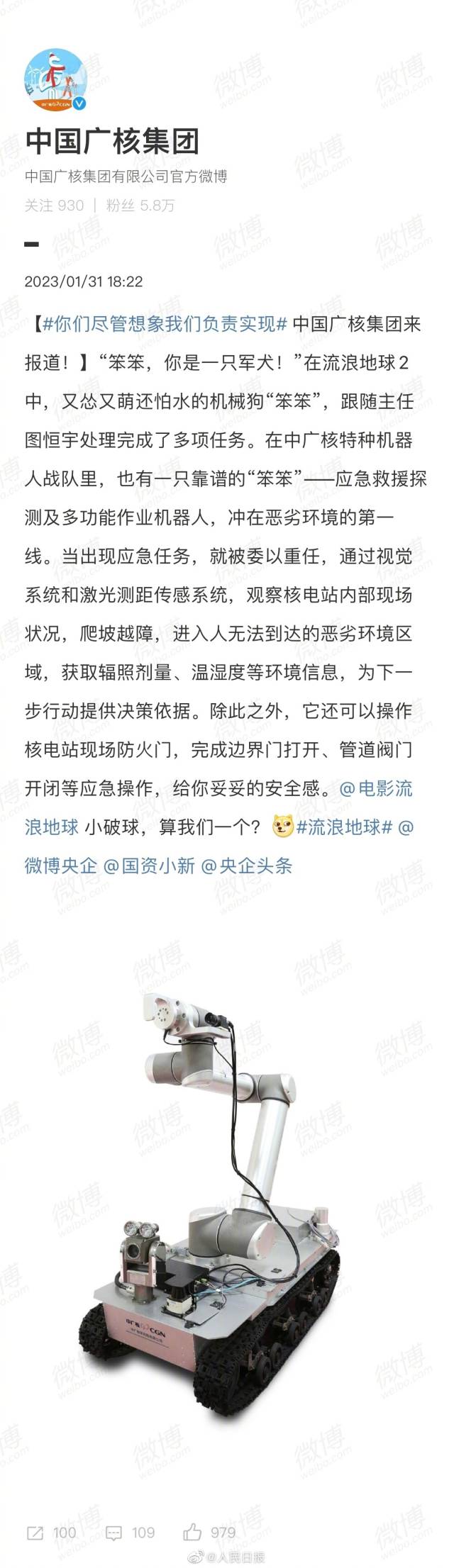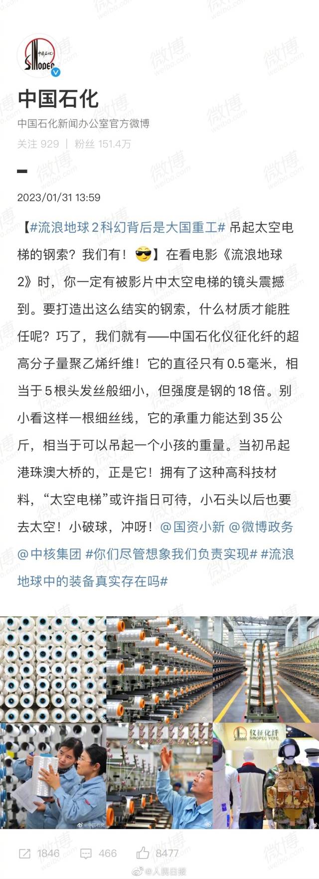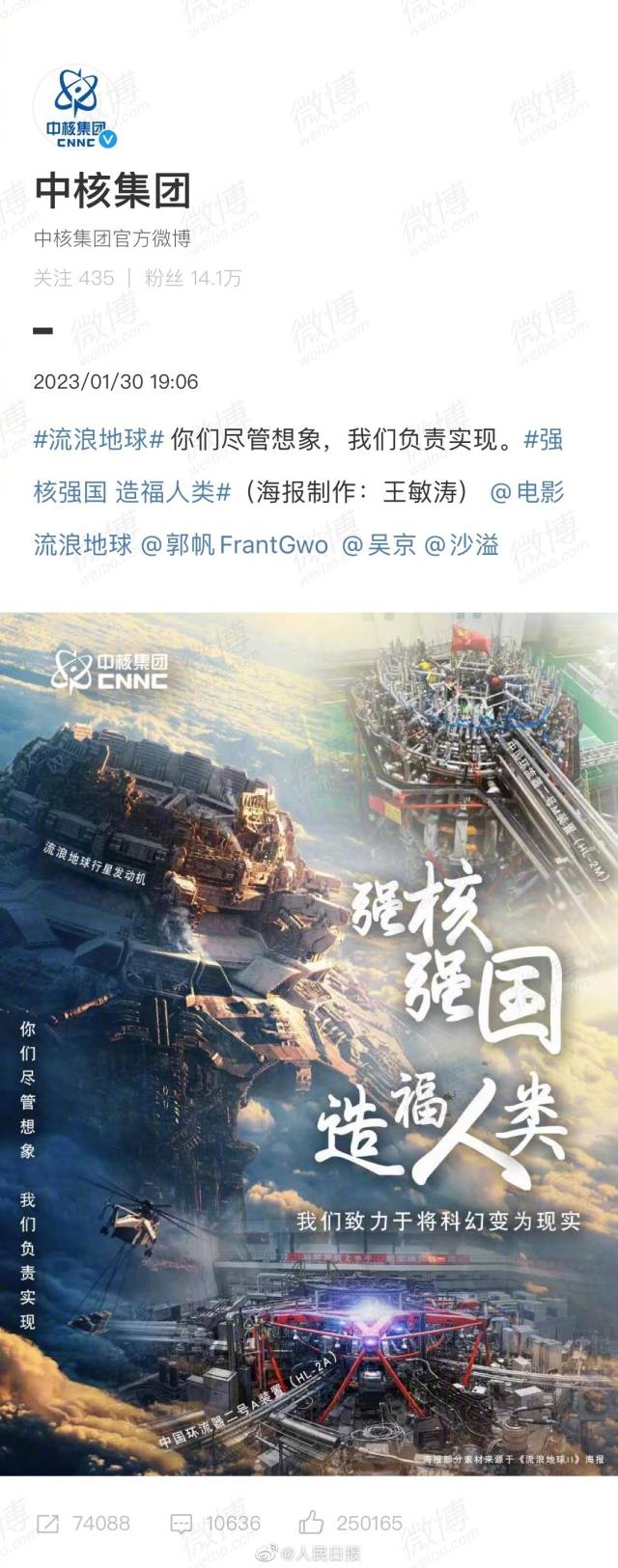 “你们尽管想象,我们负责实现。”继中核集团喊话电影《流浪地球2》后,中国航天科技集团、中国建筑、中国石油、中国石化、中粮集团等国家队“团建式”前来报到。网友:整整齐齐的国家队排面,这联动太硬核了!
