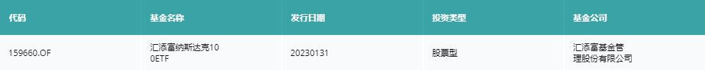 1月31日,有1只新基金发行,分别为:汇添富纳斯达克100ETF,详情见下表: