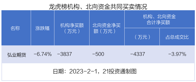同时,机构也净卖出弘业期货3837万元。