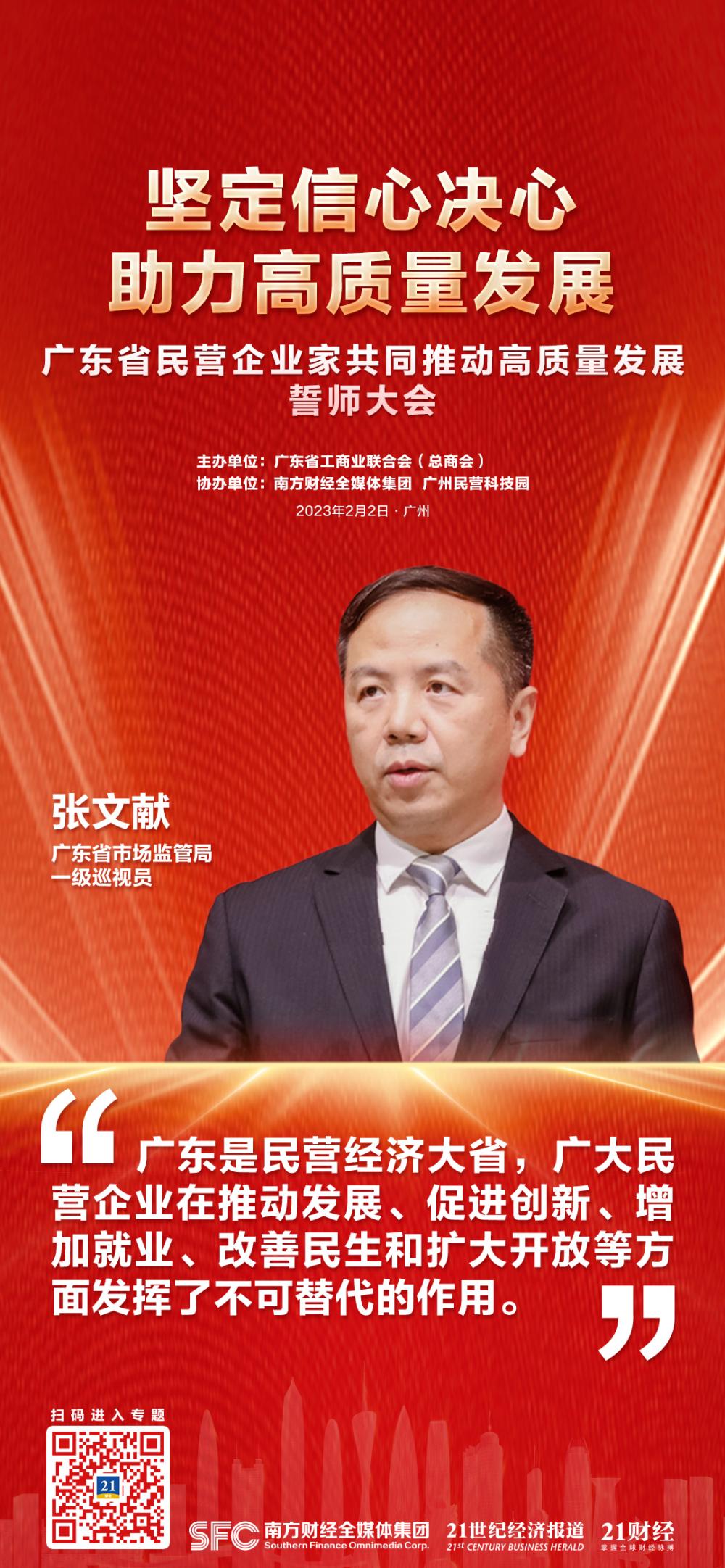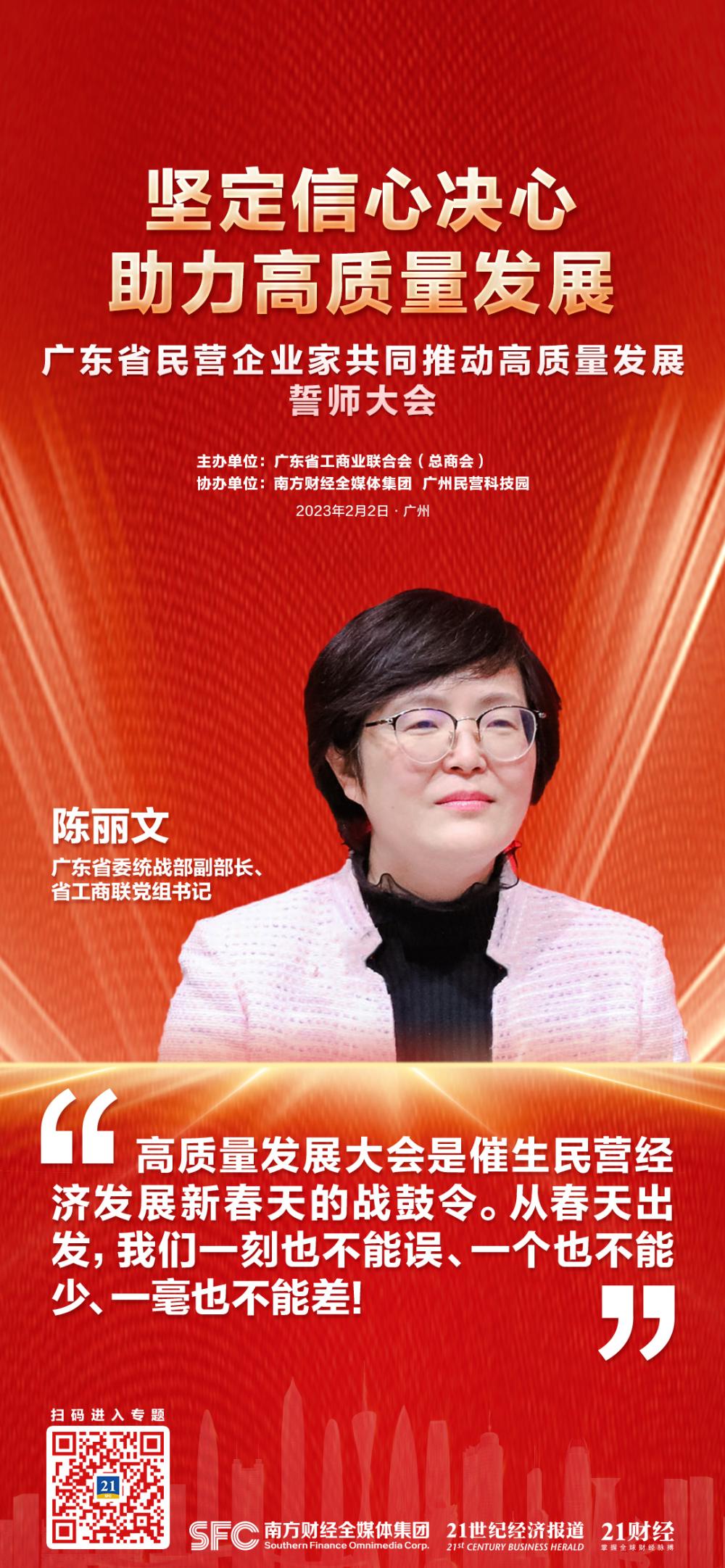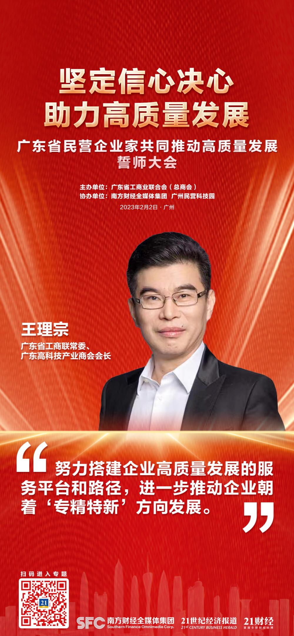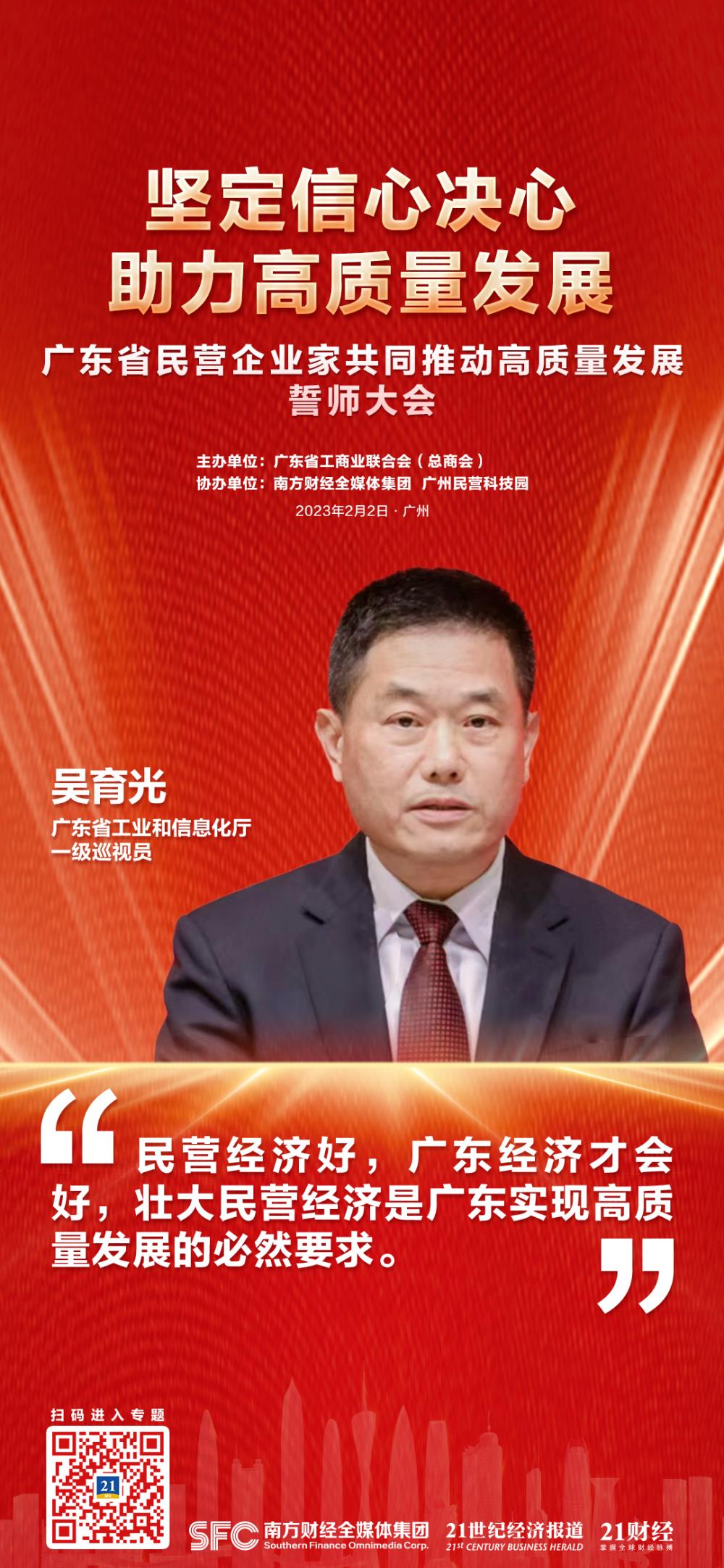 2月2日,由广东省工商业联合会(总商会)主办,南方财经全媒体集团、广州民营科技园协办的广东省民营企业家共同推动高质量发展誓师大会在广州举行,纵贯省市区,线上线下万人参会。一起来看大会精彩观点: