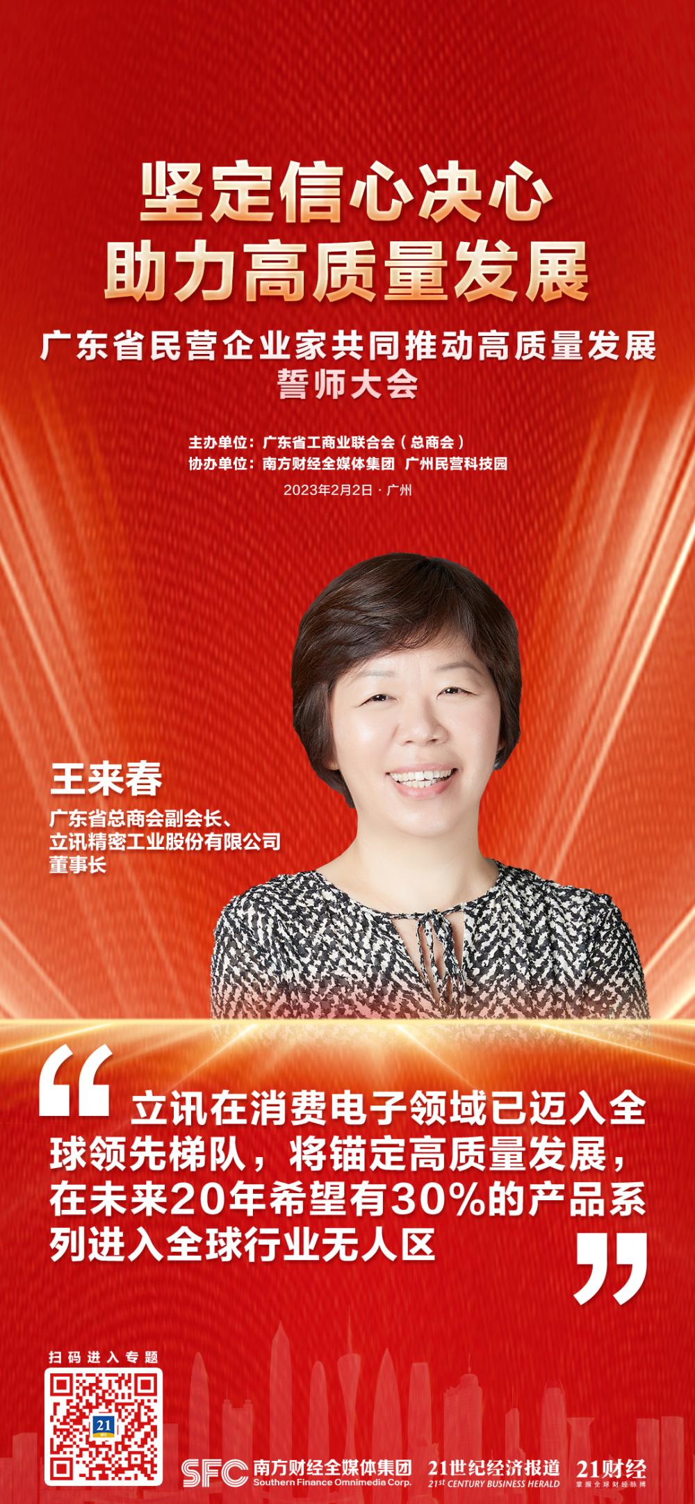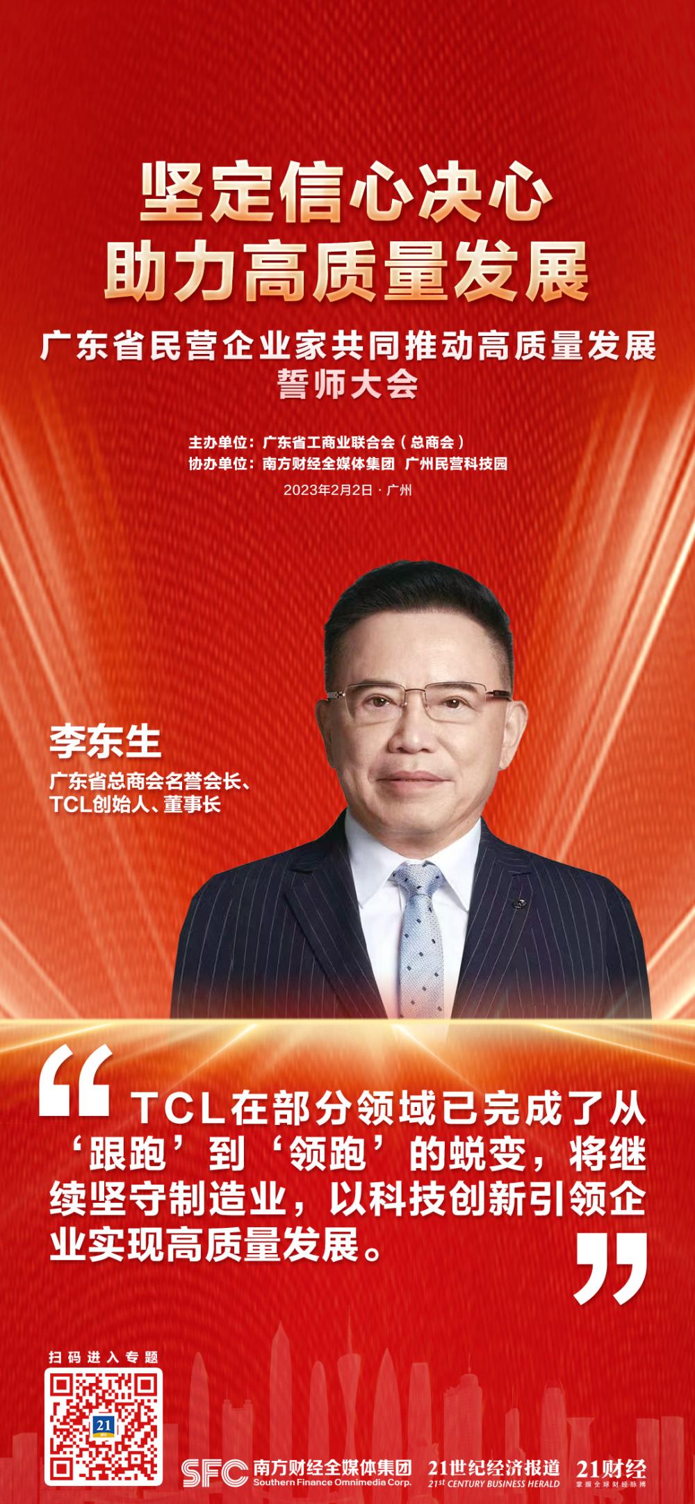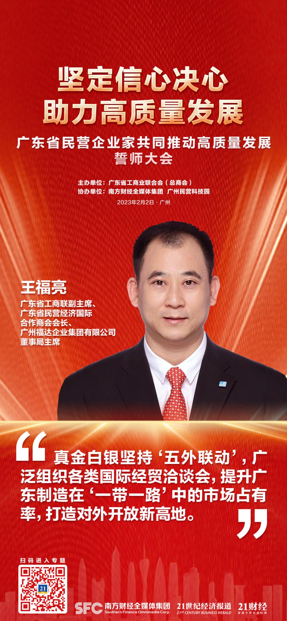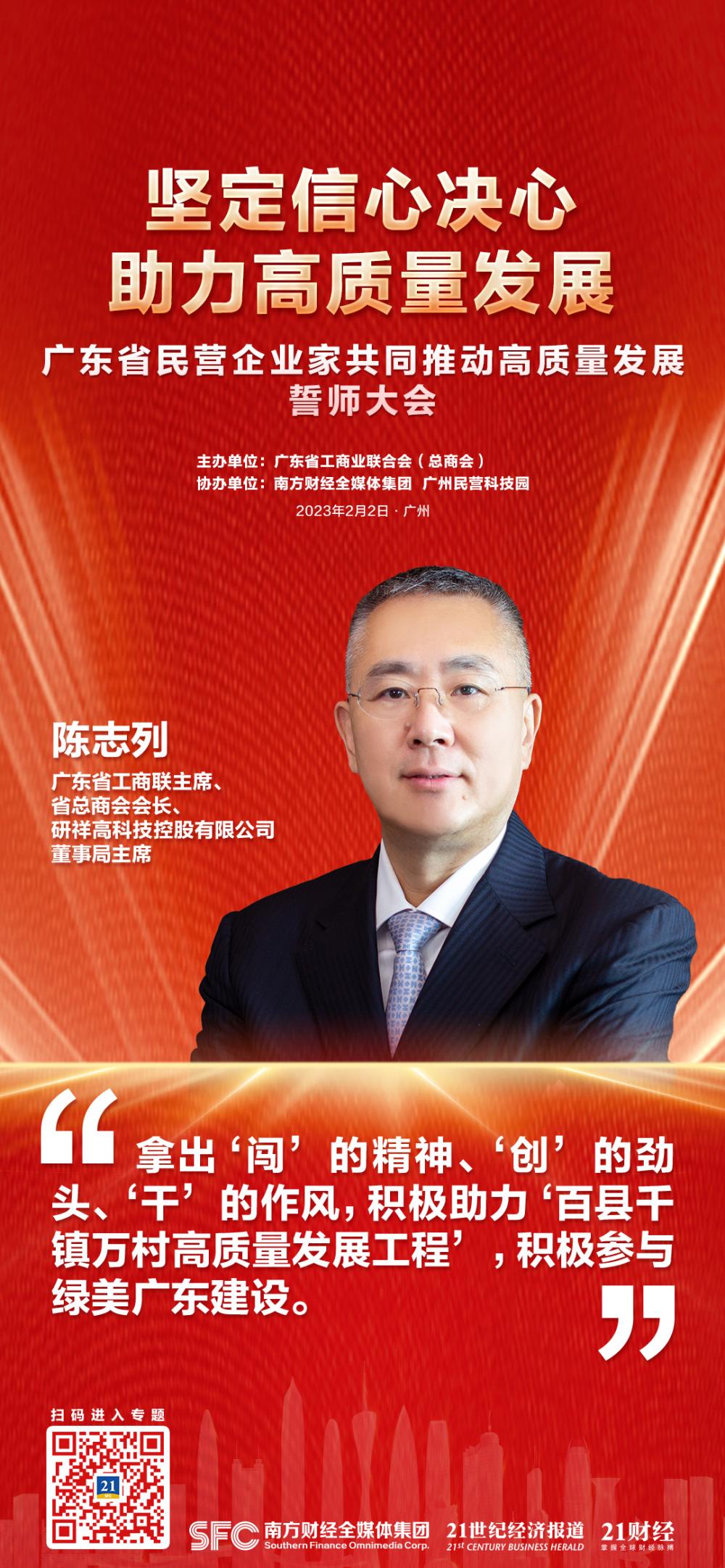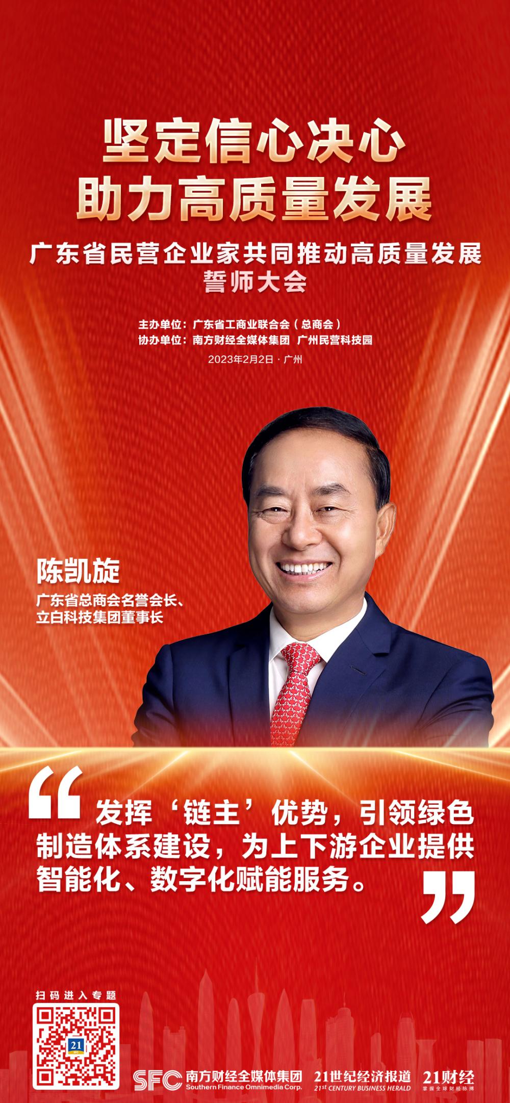 2月2日,由广东省工商业联合会(总商会)主办,南方财经全媒体集团、广州民营科技园协办的广东省民营企业家共同推动高质量发展誓师大会在广州举行,纵贯省市区,线上线下万人参会。一起来看大会精彩观点: