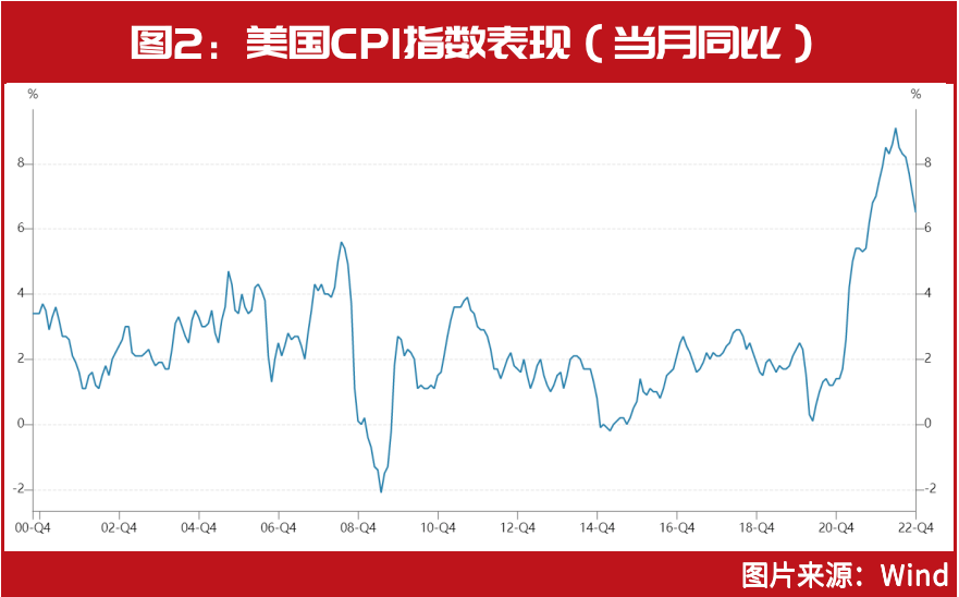 北上资金大幅流入,与国内外经济政策环境变化、人民币汇率企稳等多重内外在因素有关。如从外在因素来看,美国通胀走势回落,12月美国CPI进一步回落至6.5%(见图2)。浙商证券对此分析指出,美国通胀持续释放积极信号,随着美国通胀拐点的持续确认,美联储政策边际转向信号加强,这是近期北上资金持续流入的重要原因。浙商证券另外表示,外资对国内增长预期较为乐观,后市也有望进一步流入。
