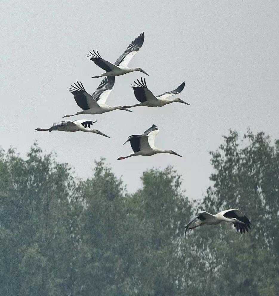 (广州南沙湿地东方白鹳“六鹳图”。陈春庆摄)