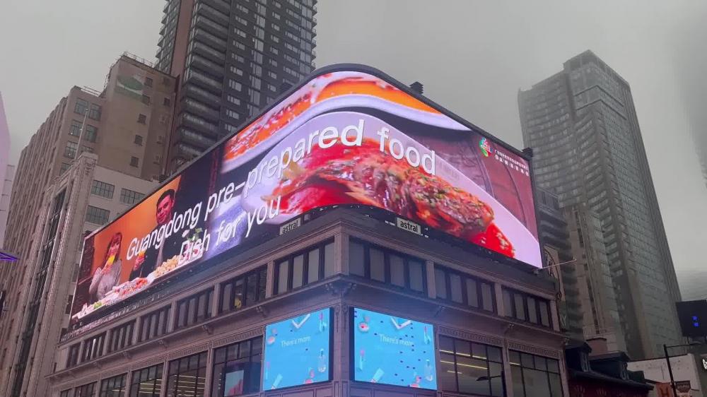 兔年新春,加拿大多伦多央街屋顶大屏,色香味俱全的“酒香鲈鱼”从大屏幕呼之欲出,吸引过往路人驻足。“Guangdong pre-pared food Dish for you”——来自广东的预制菜向全球消费者送去新春祝福,加拿大总理贾斯廷·特鲁多发来贺函。