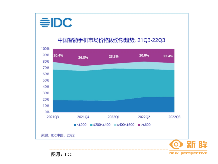 沈炜将2022年比作vivo的高端突破之年,Counterpoint一组数据显示,2022年二季度中国3500元以上高端机市场中,vivo占据了13%的份额,仅次于苹果排名第二,在600美元至799美元这一区间段,vivo的份额同比增加504%,高端产品平均售价达到历史最高6170元。