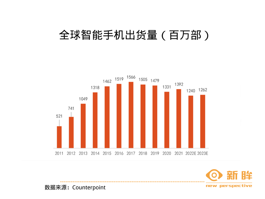 同一时期,根据Counterpoint Research调研显示,全年智能机出货量再次出现两位数下降后,中国智能手机出货量的下降趋势,而且,已经蔓延了五年。