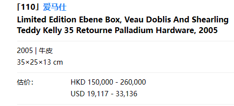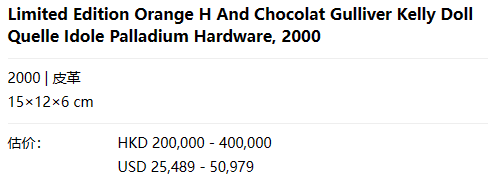这款包最初是在2000年首次发售,当时的零售价约为2500美元,直到2005年该包停产后,它突然成为了爱马仕收藏家最想要的单品。而这次出现在拍场上,估价飙升至20万至40万港元(约合美金2.55万-5.1万元),价格亦翻了十倍。