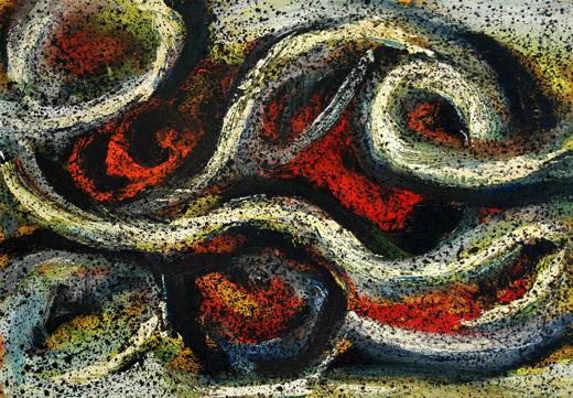 如何从网状的结构中突围,如何解构这些越来越自身纠集的色块,如何减弱色块的重量,这成为艺术家必须解决的难题!如何解构?如何解脱出来?