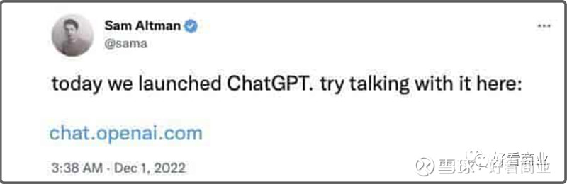 2022年12月1日,OpenAI 的CEO Sam Altman 在推特上写道:“今天我们推出了 ChatGPT,尝试在这里与它交谈”。