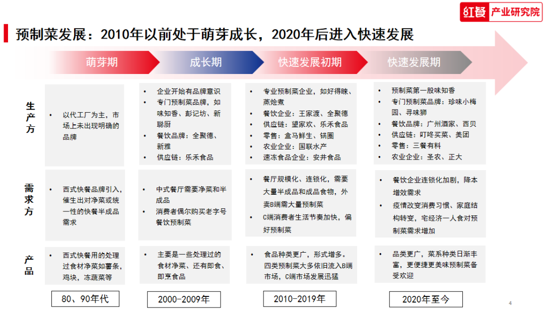 事实上,国内预制菜也不是近几年才出现的,早在20世纪八九十年代就已萌芽,21世纪初期成长,2010年行业进入快速发展。