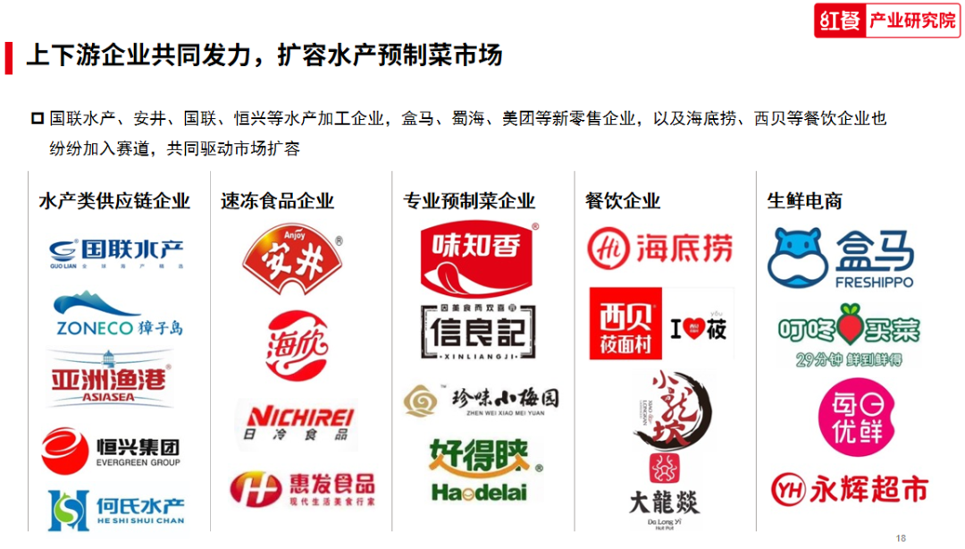 国联水产、安井、国联、恒兴等水产加工企业,盒马、蜀海、美团等新零售企业,以及海底捞、西贝等餐饮企业也纷纷加入赛道,共同驱动市场扩容。