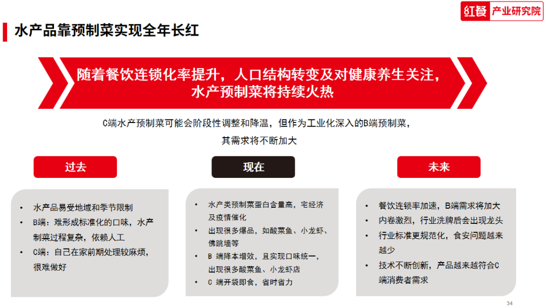 那么,2022年水产预制菜发生了哪些变化?2023年又有哪些新的发展趋势?红餐产业研究院发布的《中国水产预制菜研究报告2023》将详细为你解答。