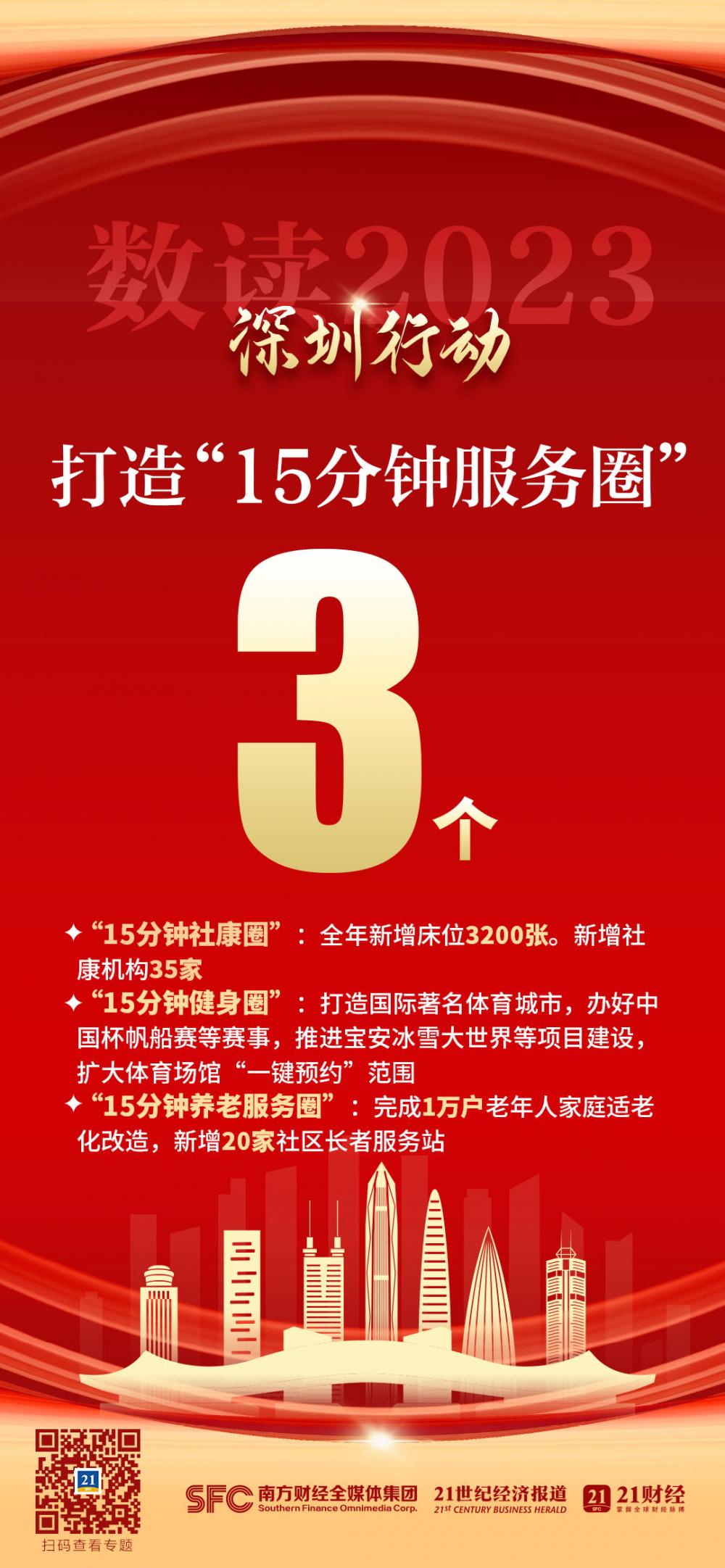2022年,深圳新增三甲医院7家,累计32家;深圳预计新增床位3200张;新增社康机构35家;打造国际著名体育城市,办好中国杯帆船赛等赛事,推进宝安冰雪大世界等项目建设,扩大体育场馆“一键预约”范围;完成1万户老年人家庭适老化改造,新增20家社区长者服务站。