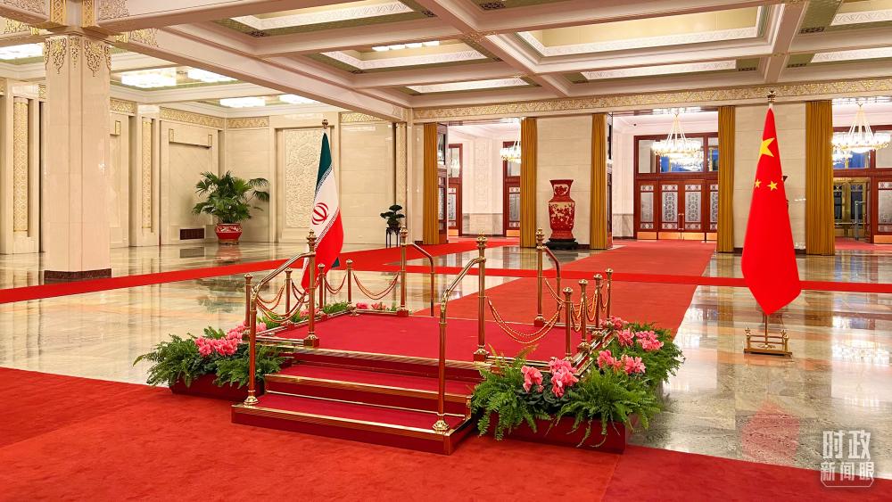 △习近平在人民大会堂北大厅举行仪式欢迎伊朗总统访华。(总台央视记者程铖拍摄)