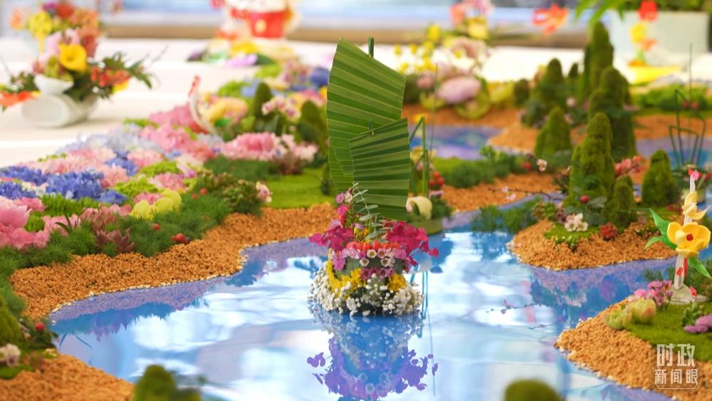 △2月10日会见结束后,习近平为洪森举行了宴会。这是宴会现场的帆船造型。(总台央视记者蒋硕拍摄)