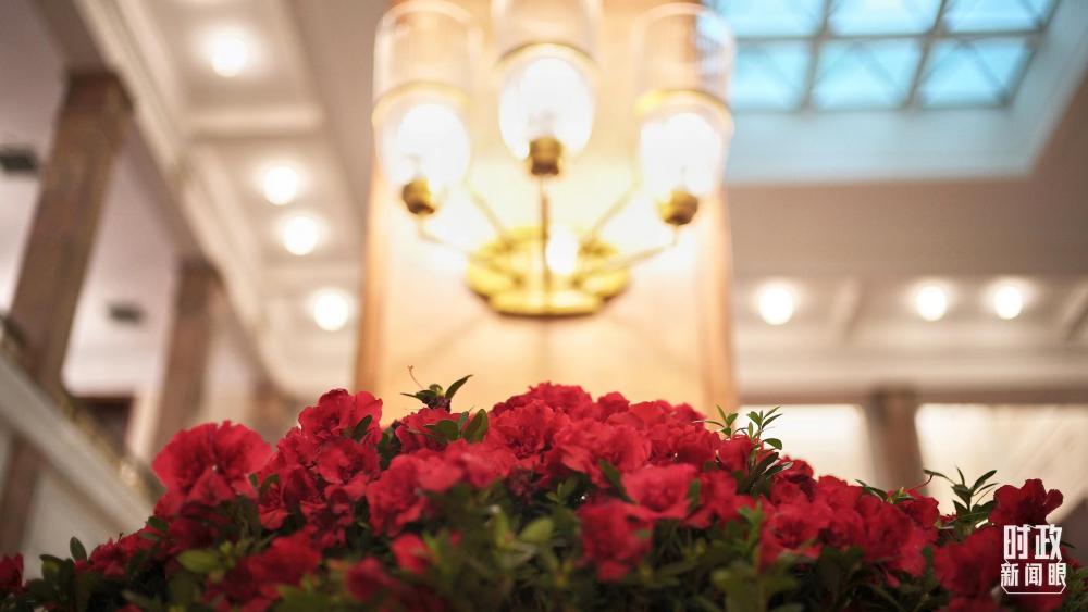 △人民大会堂北大厅外,杜鹃花正在绽放。(总台央视记者彭汉明拍摄)