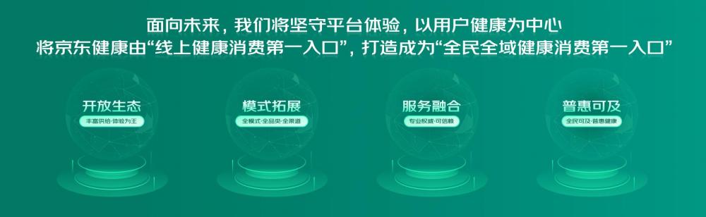 在不断深化“线上健康消费第一入口”、提升用户服务价值的基础上,京东健康还将从开放生态、模式拓展、服务融合和普惠可及四个维度入手,携手广大品牌伙伴一道,致力打造成为“全民全域健康消费第一入口”。