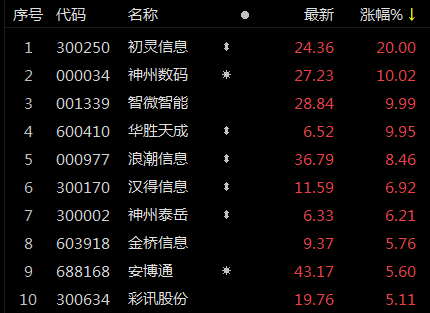 今日(2月15日) 早盘,信创板块盘中震荡走强,初灵信息“20cm”涨停,神州数码、智微智能、华胜天成涨停,浪潮信息、汉得信息、神州泰岳、金桥信息等快速跟涨。