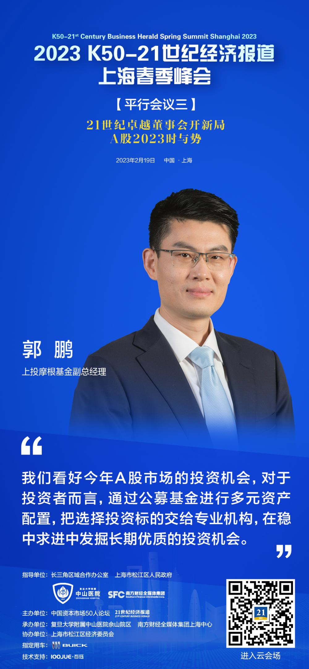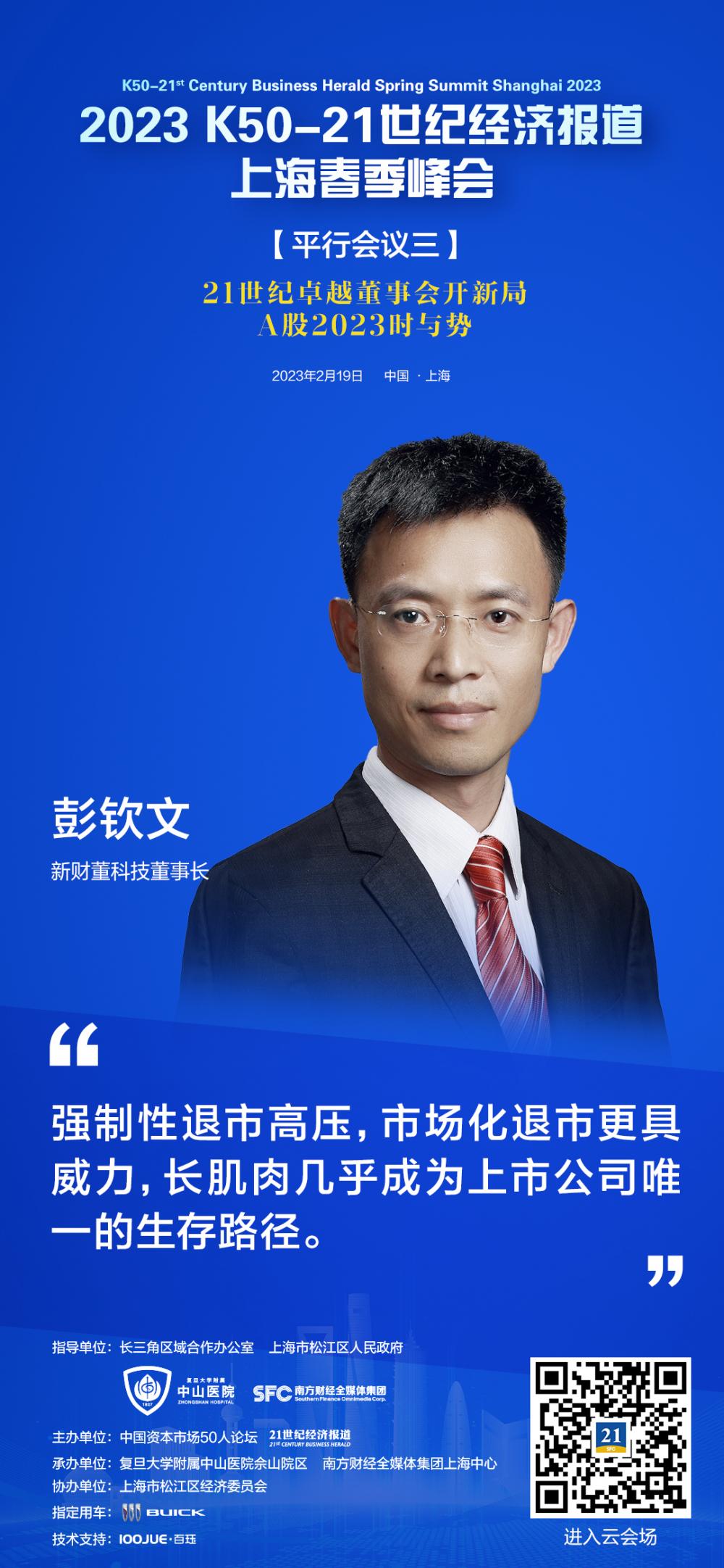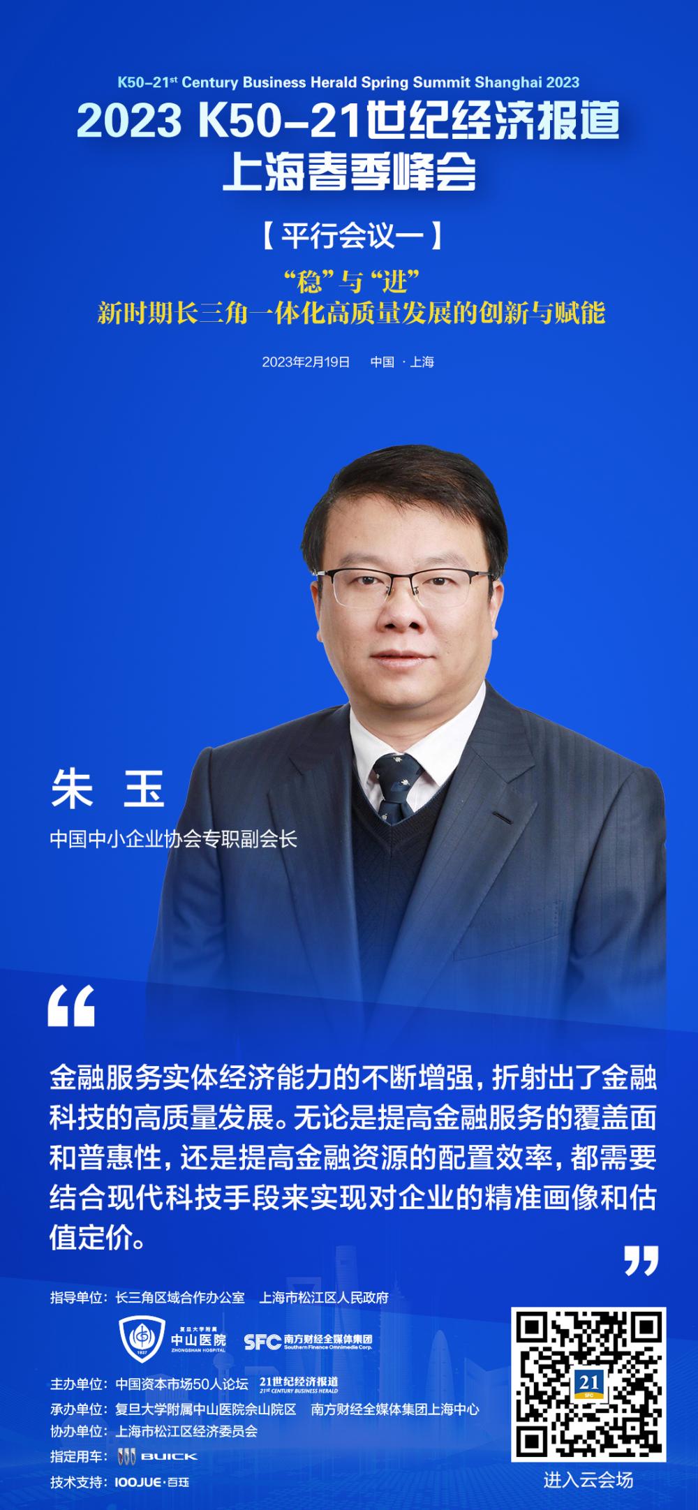 2月19日,由长三角区域合作办公室、上海市松江区人民政府、复旦大学附属中山医院、南方财经全媒体集团指导,中国资本市场50人论坛(K50智库)、21世纪经济报道联合主办的“2023 K50-21世纪经济报道上海春季峰会”在上海召开。
