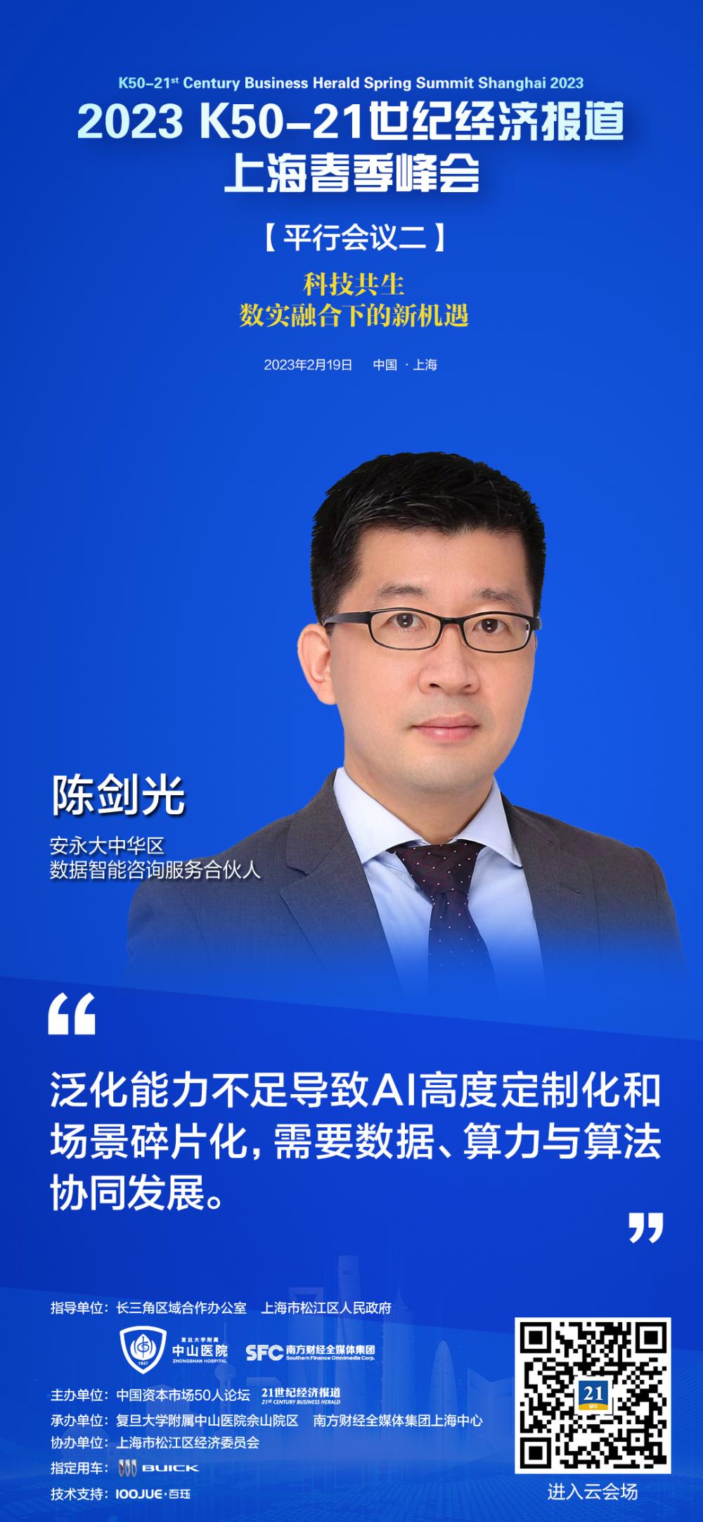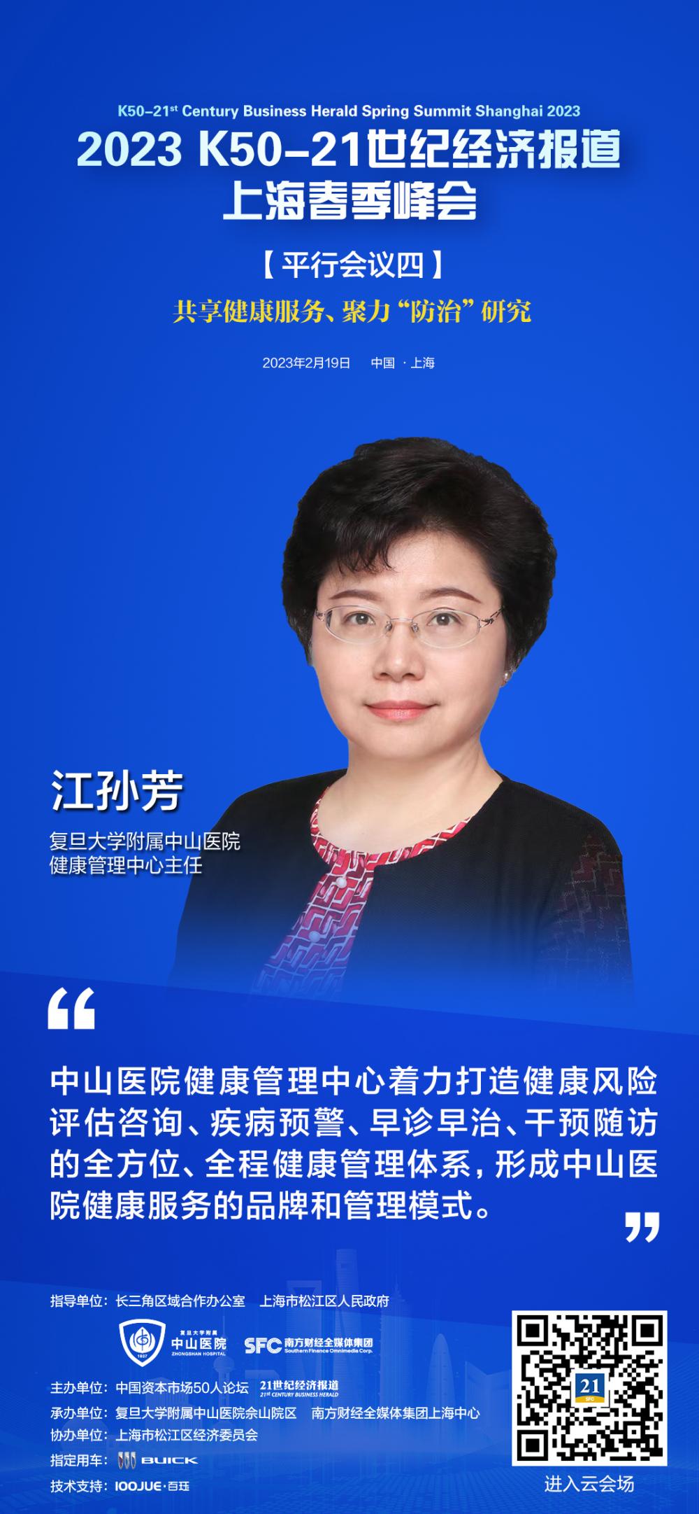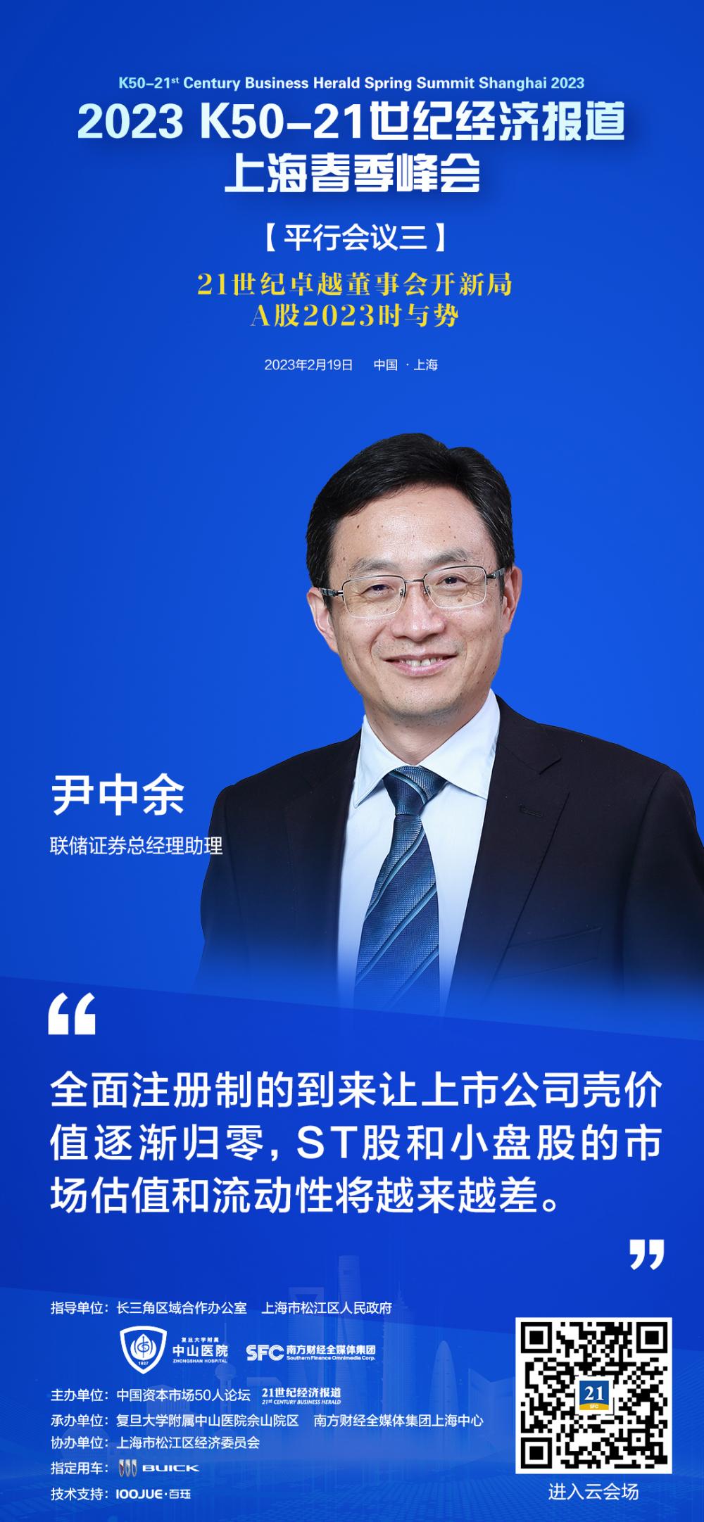 2月19日,由长三角区域合作办公室、上海市松江区人民政府、复旦大学附属中山医院、南方财经全媒体集团指导,中国资本市场50人论坛(K50智库)、21世纪经济报道联合主办的“2023 K50-21世纪经济报道上海春季峰会”在上海召开。