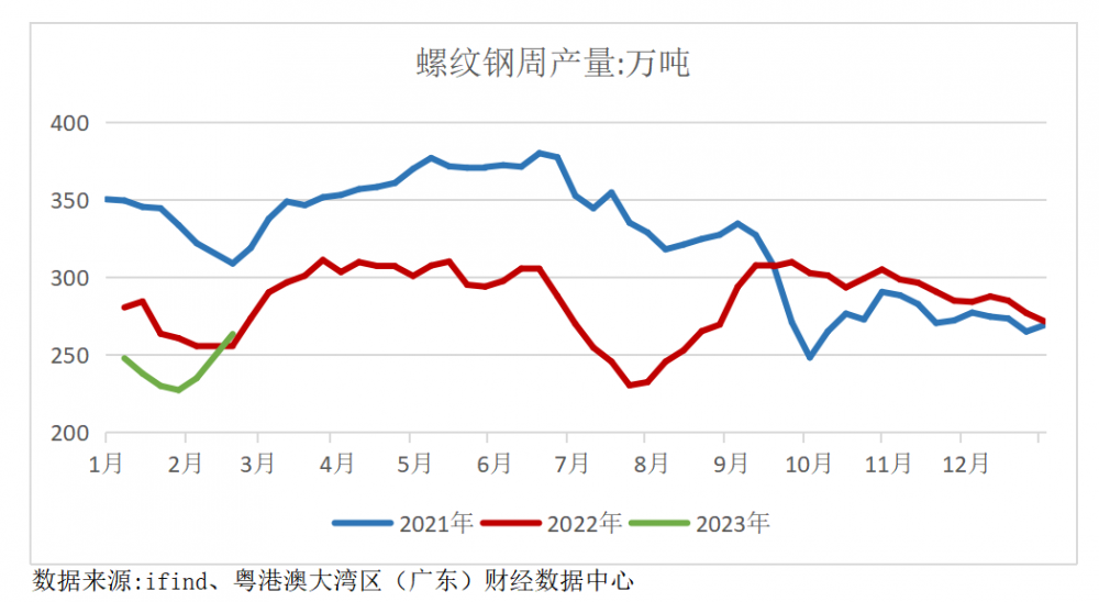 粤港澳大湾区(广东)财经数据中心监测发现,2023年节后建筑钢材复工热度低于往年,产需市场双双回温较慢。