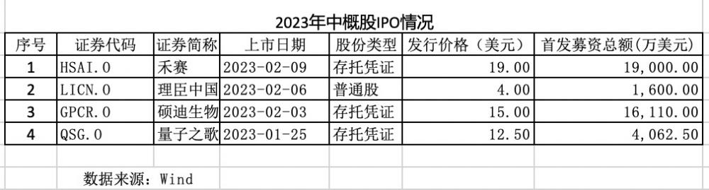 Wind数据显示,2023年开年以来,已有4家中国企业成功赴美上市,还有多家中国企业公开递表美股IPO,包括新瑞鹏宠物医疗、天成金汇、分蛋科技等。