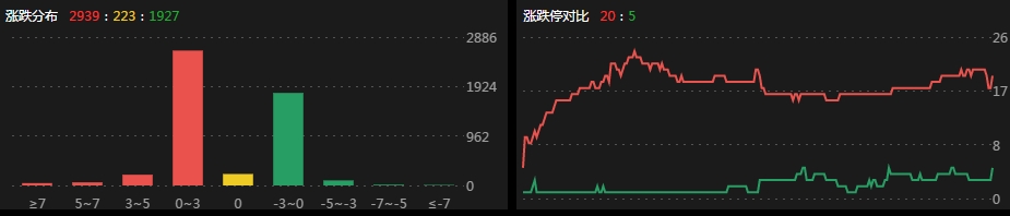 涨跌数对比:2939:223:1927