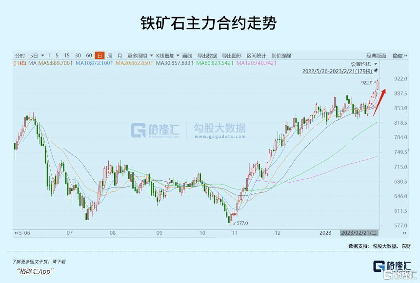 金融市场也给予了非常的积极回应。反应内需的黑色系持续爆发,铁矿石主力期货价格已经去到了922元/吨,大幅刷新节前高位,较去年11月累计上涨57%。螺纹钢也是如此,连续5天大涨,累计涨幅高达5.5%。