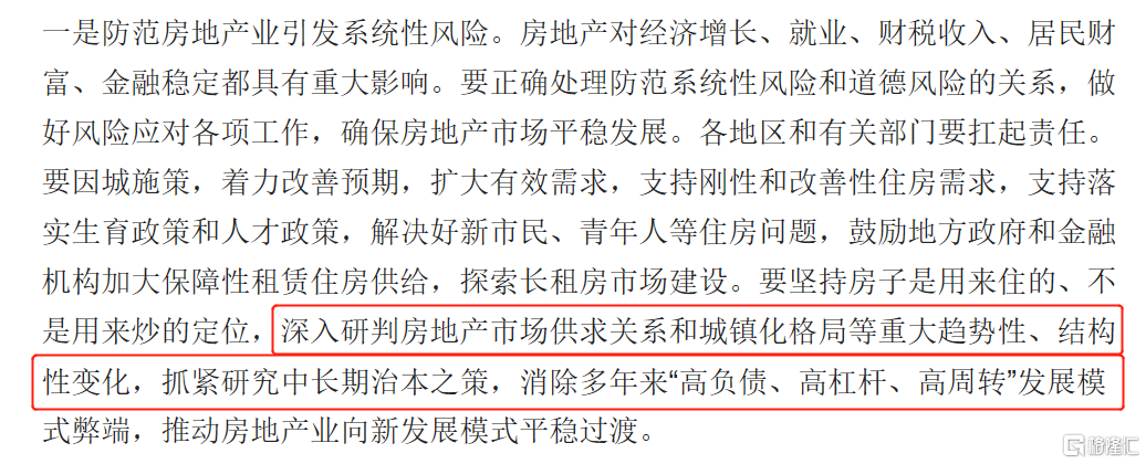 对此,高层也有清晰认识——深入研判房地产市场供求关系和城镇化格局等重大趋势性、结构性变化,抓紧研究中长期治本之策……